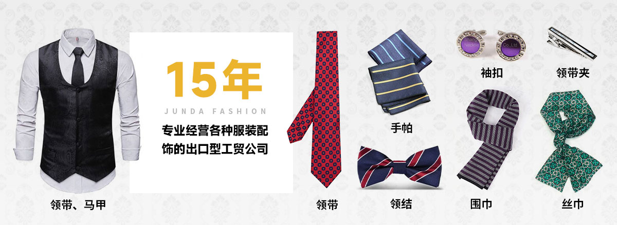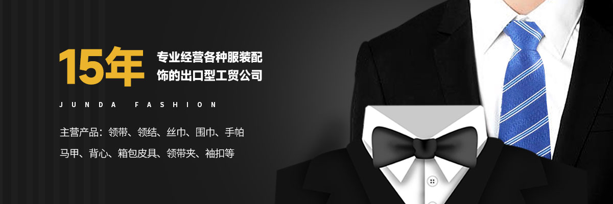 上饒市駿達(dá)服飾有限公司是一家專業(yè)經(jīng)營各種服裝配飾的出口型工貿(mào)公司,公司多年來致力各種男女服裝國際流行配飾的開發(fā)和生產(chǎn),主要產(chǎn)品為領(lǐng)帶、領(lǐng)結(jié)、絲巾、圍巾、手帕、馬甲、背心、箱包皮具、領(lǐng)帶夾、袖扣等,有豐富的內(nèi)外銷經(jīng)驗(yàn)及廣泛的國內(nèi)外銷售渠道,生產(chǎn)基地管理嚴(yán)格,質(zhì)量過硬,并有一批生產(chǎn)加工企業(yè)長期合作